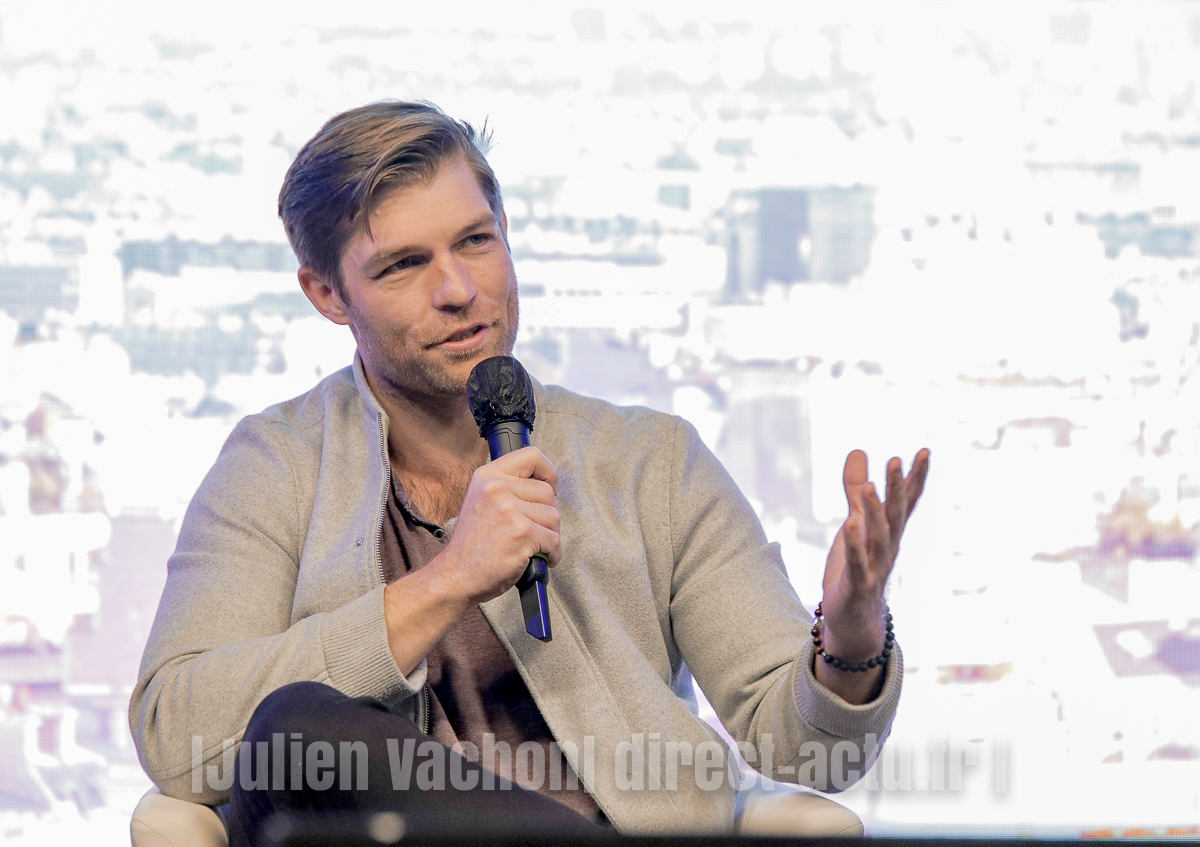 Liam McIntyre nous a surpris par sa proximité avec le public durant la convention. Il n’hésite pas à descendre de la scène et à faire circuler lui-même le micro. Quand il n’entend pas bien une question, il se rapproche des personnes et semble rester un mec simple. Quand on lui demande quel personnage il rêve d’incarner, il sourit et répond spontanément Batman.