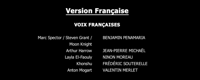 Pour la VF c’est le comédien Valentin Merlet qui prête sa voix, car les doublages ont eu lieu quelques mois après le décès de l’acteur.