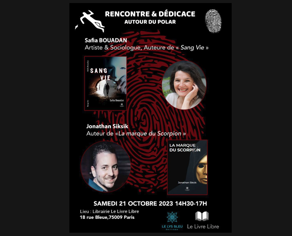 Lors d’une rencontre avec les auteurs du Lys Bleu, Safia Bouadan et Jonathan Siksik, un débat sur le thème du polar s’est tenu à la librairie Le Livre Libre (18 rue Bleue, 75009).