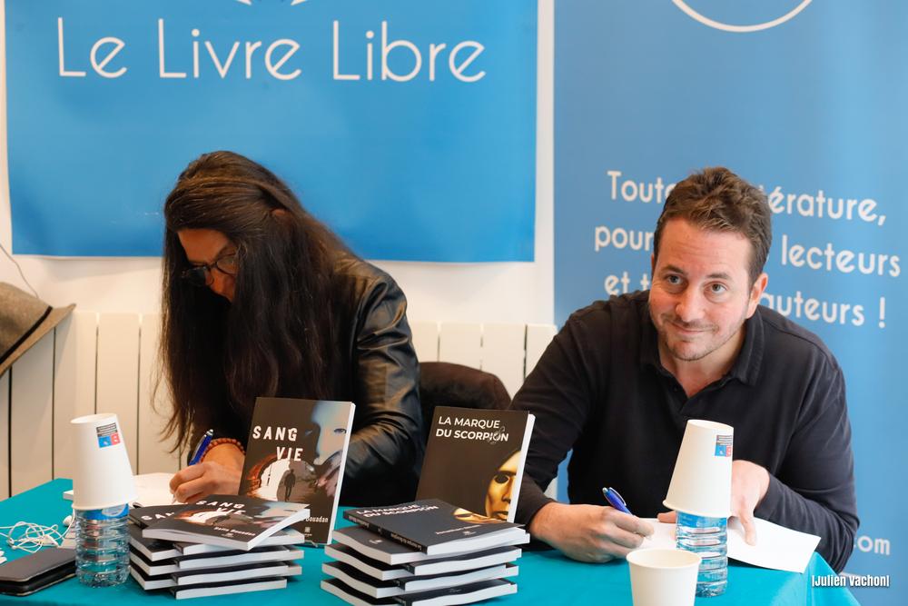 Au cours de cette séance de dédicaces, l’auteure, comédienne et sociologue Safia Bouadan a partagé son parcours et évoqué les influences présentes dans les thèmes de son roman SANG VIE. Il s’agit d’un roman à suspense décrivant la quête de revanche sur la vie de Jean Carello, un fils aspirant à vivre la vie d’un demi-frère décédé qu’il n’a jamais connu. Si vous avez aimé L’homme qui voulait vivre sa vie (2010, Eric Lartigau), vous serez charmé par le style de plume de l’auteure.