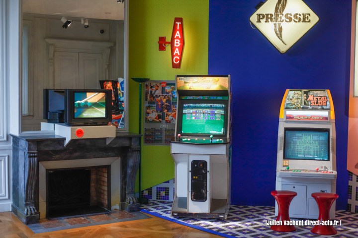 L’exposition retrace chronologiquement l’évolution du divertissement, des ancêtres des flippers au développement des jeux vidéo. L’électronique a joué un rôle crucial, permettant la création de flippers plus complexes et l’avènement des jeux vidéo. L’importance du « high score » est soulignée, incitant les joueurs à performer. Les années 80 ont vu la naissance des salles d’arcade dédiées, tandis que le baby-foot et les flippers sont devenus des sports à part entière. On retrouve également plusieurs accessoires dans l’exposition allant de la VSH, K7 audio au Jukebox offrant la possibilité de choisir un hit appartenant à la période 70-90.