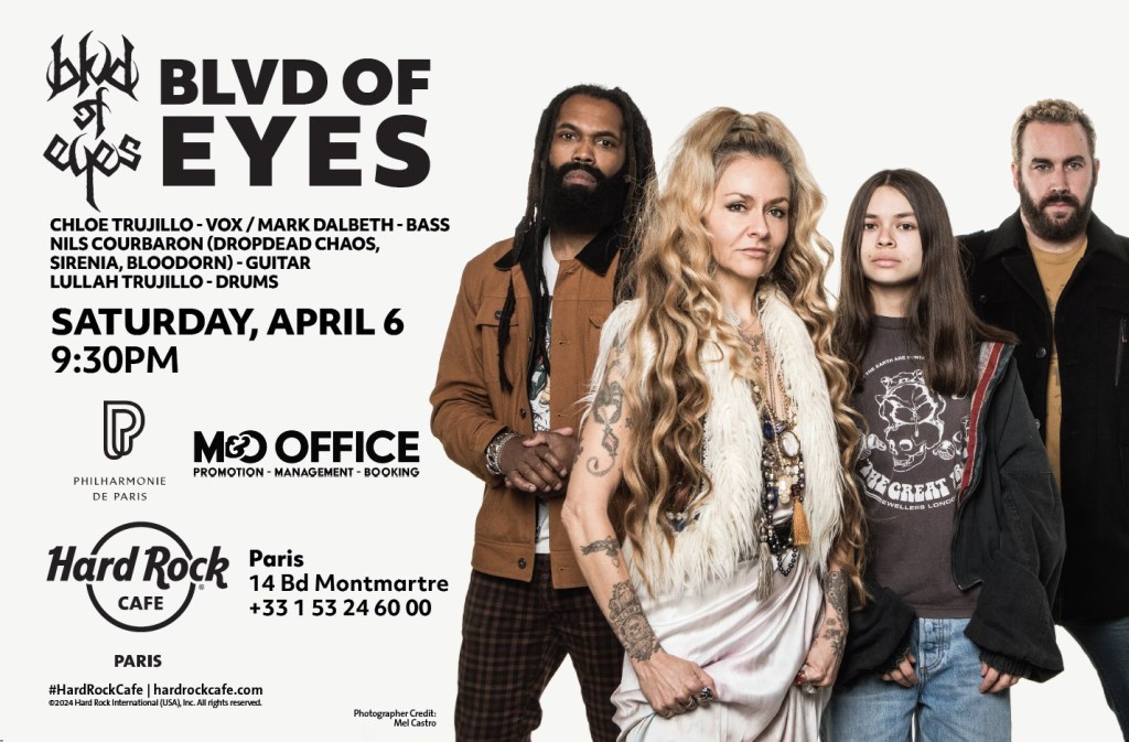 Après avoir joué et sorti de la musique sous le pseudonyme « Chloe Trujillo/Rav Medic », elle se réinvente et est désormais officiellement « Blvd Of Eyes ». Retrouvez-la sur Instagram et venez la voir en concert très prochainement ! Sa musique est disponible sur toutes les principales plateformes et de nouveaux titres seront bientôt dévoilés !