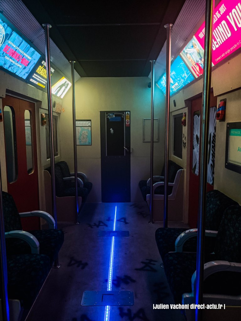 Dans l’escape game du Joker, on prend le métro de Gotham et les détails sont réalistes ! Selon la mythologie de Nolan, ce métro et le tramway ont été construits et modernisés par le père de Bruce.