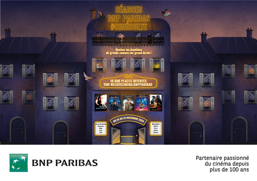 BNP Paribas, partenaire passionné du cinéma depuis plus de 100 ans, offre au grand public 10 000 places de cinéma pour voir (ou revoir) ses films favoris via un jeu-concours gratuit ouvert à tous sur le site de l’évènement.
