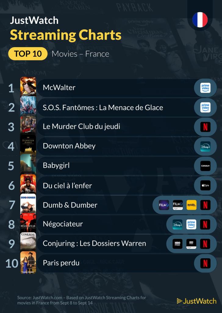 Découvrez le top streaming de la semaine en France : McWalter, Mercredi et Downton Abbey dominent les films et séries. Le classement complet à retrouver ici.