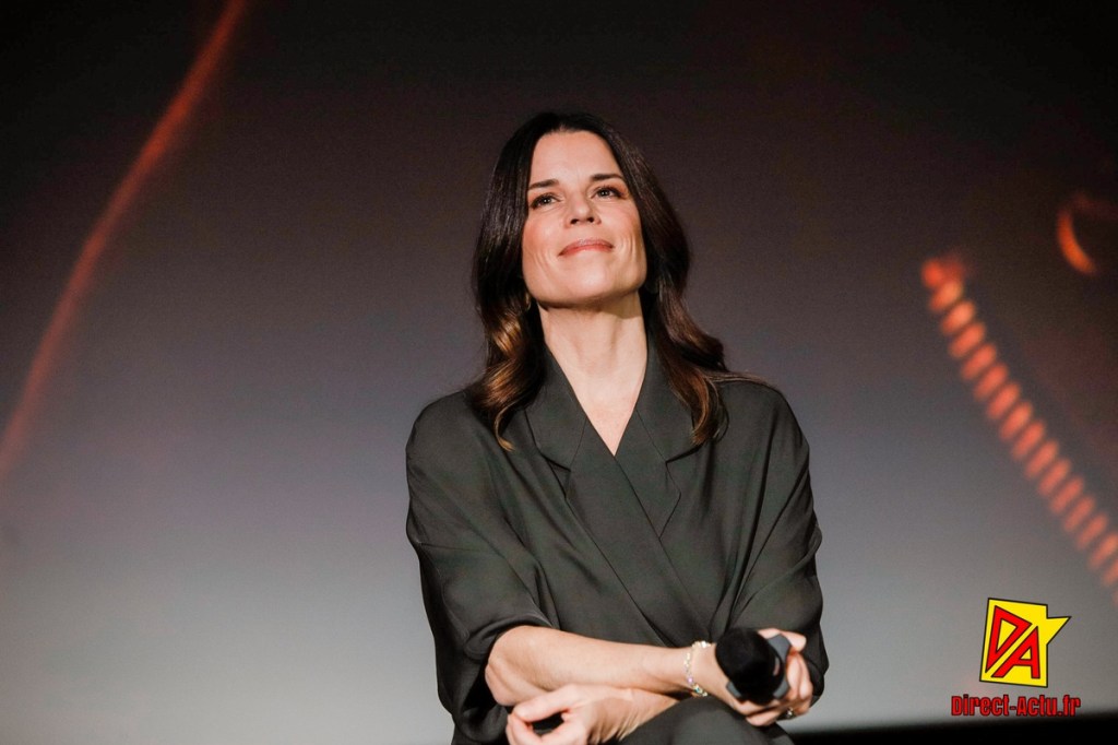 L’entrée de Neve Campbell a déclenché une salve d’applaudissements qui ressemblait moins à un réflexe de star system qu’à une gratitude collective. L’échange laisse apparaître une ligne claire, le lien entre l’actrice, Sidney Prescott, et un public qui a grandi avec elle. Interrogée sur le fait d’être à Paris pour cet anniversaire, elle insiste sur l’évidence d’une longévité qui dépasse la nostalgie, « it’s pretty incredible, 30 years later », et sur l’appétit intact du public pour ce type de cinéma. Elle souligne aussi l’intérêt concret de revoir le premier film sur grand écran, avec une salle qui réagit ensemble, et elle glisse l’idée que beaucoup « will be very delighted » de retrouver l’original dans ces conditions.